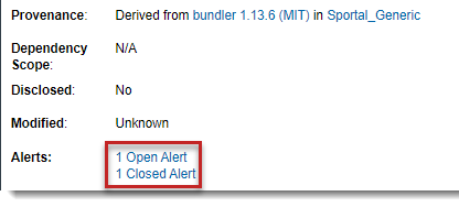 - To view open or closed alerts, open the Inventory Details tab in the right pane. If alerts exist, the Alerts field on the tab shows separate links to view open or closed alerts, as appropriate.