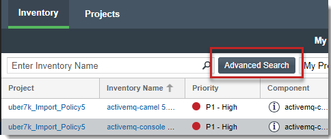 6. To view the open and closed alerts for a given inventory item associated with a given project, locate the item, and click the icon in the Alerts column.