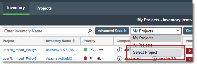 5. (Optional) To filter the view to a specific project, click Select Project to select a specific project.
