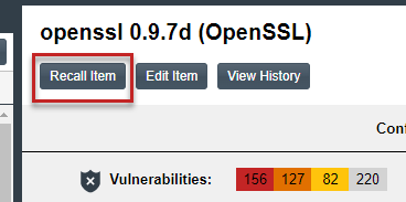 1. Open the Project Inventory tab for the desired project, and select the inventory item that you want to recall (see Displaying Project Inventory).